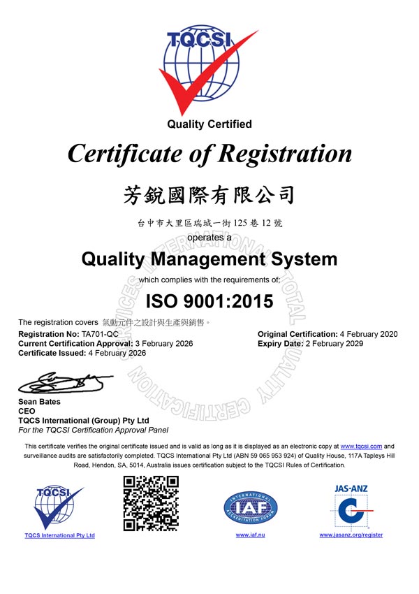提高服務品質的宗旨 一直研發改進增強使用壽命 2008 年通過 ISO 9001 的認證以及歐盟 CE 的認證